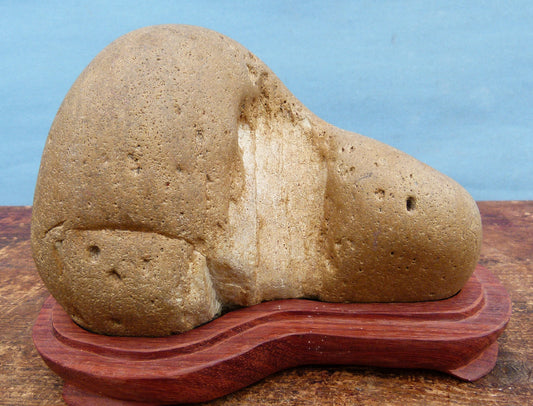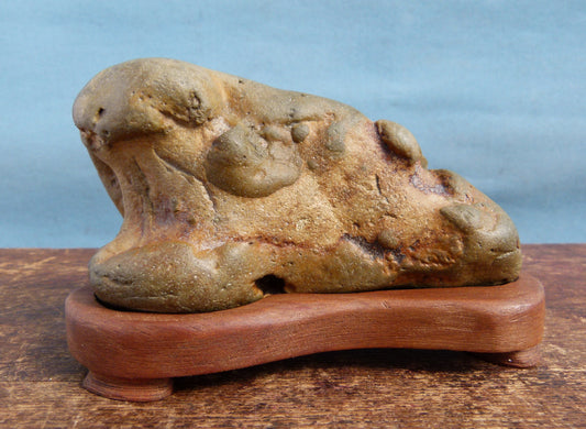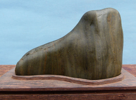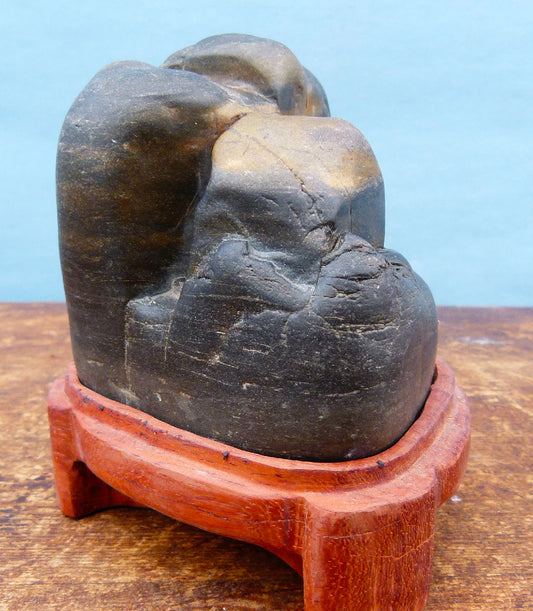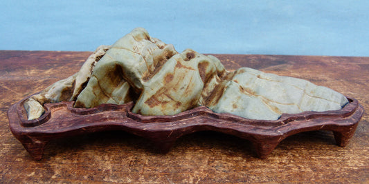 Suiseki are small, naturally formed stones admired for their beauty. Pronounced suu-ee-seck-ee these fascinating stones suggest a distant mountain, waterfall, island, house, animal, bird, person or some other natural entity. The art of suiseki is believed to have originated some two thousand years ago in China, where small stones of great natural beauty were set on stands to represent islands and mountains associated with Buddhist or Taoist beliefs. In the sixth century A.D. emissaries from the Asian mainland brought several such stones to Japan. The Japanese adapted the art to their own tastes and have practiced it to this day.