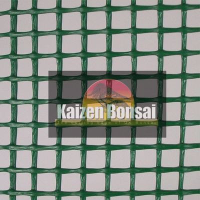 Green coarse plastic mesh used to cover drainage holes in Bonsai Pots to prevent soil escaping. Unlike finer-grade mesh this product will not clog with silt.