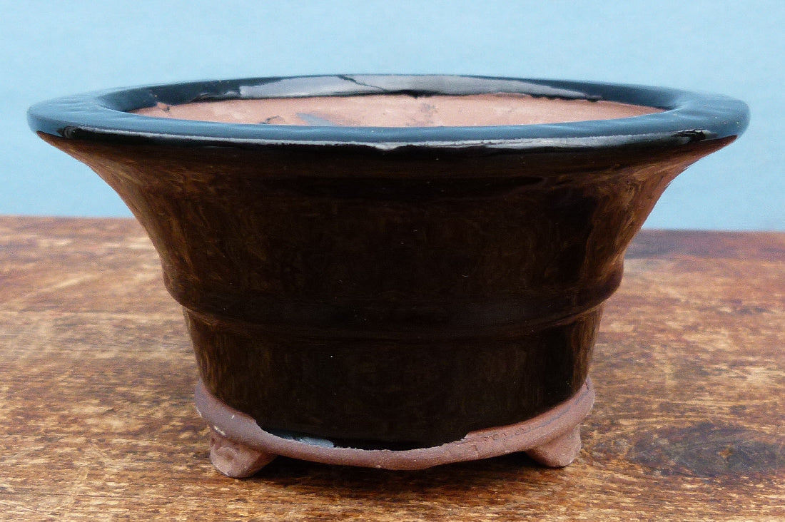 • Black Glazed Deep Round Bonsai Pot - 5"