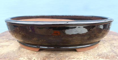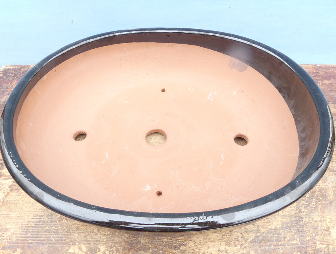 Black Glazed Oval Bonsai Pot - 15"