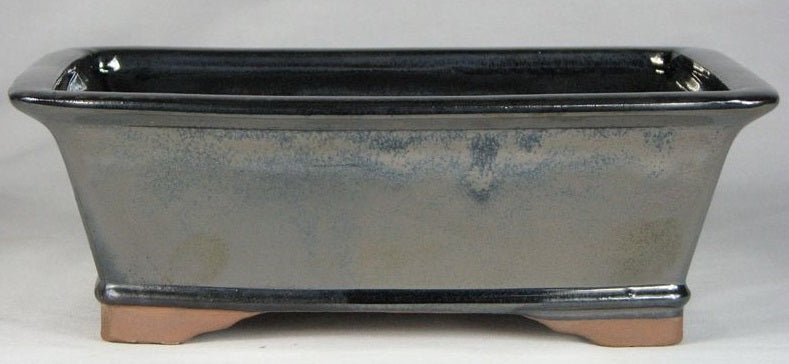 - Blue/Black Glazed Rectangular Bonsai Pot - 10"