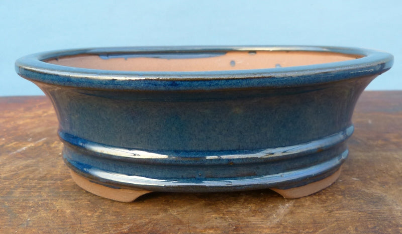 Blue Glazed Oval Bonsai Pot - 8"