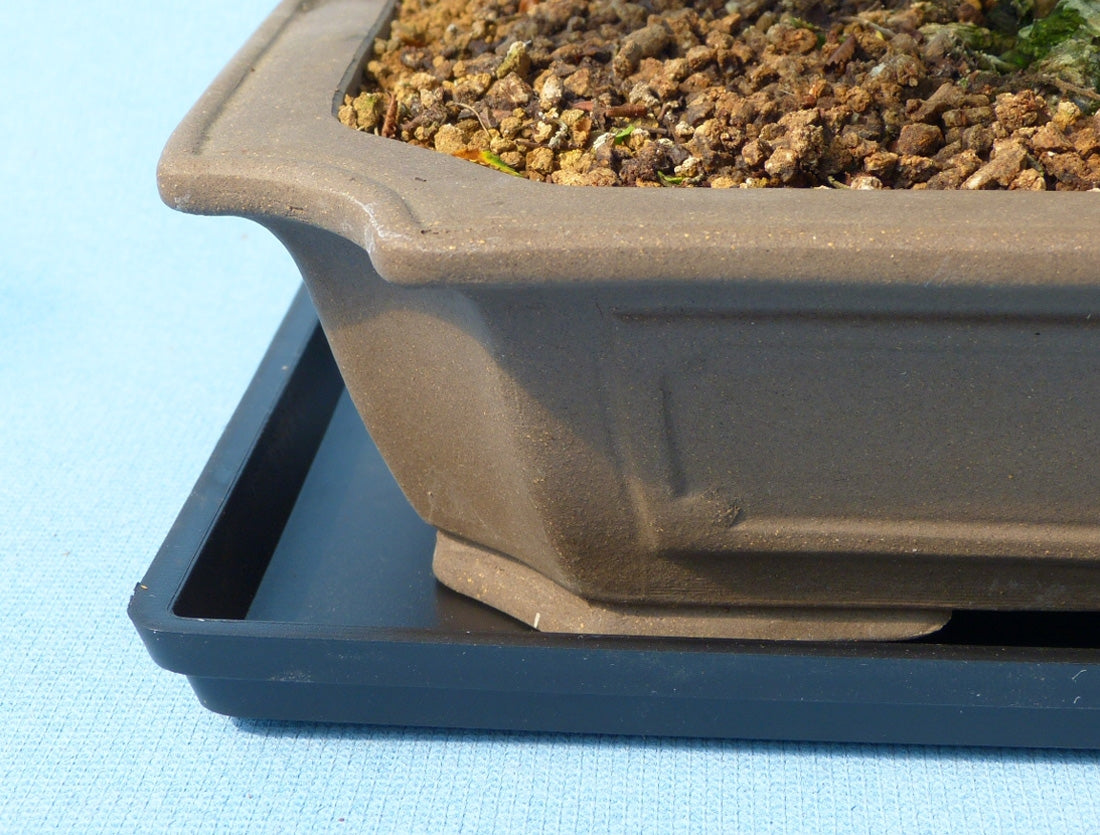 Nice silk finish black plastic under tray for indoor bonsai trees. Prevents water damage by catching drips from watering. Can also be filled with you choice of gravel or other substrates.