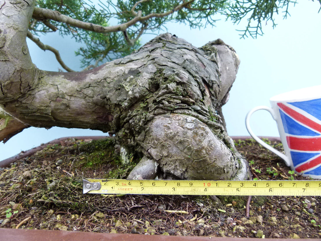 The tree measures approximately 26" tall and 22" wide above the pot with a 7" diameter trunk base/nebari.