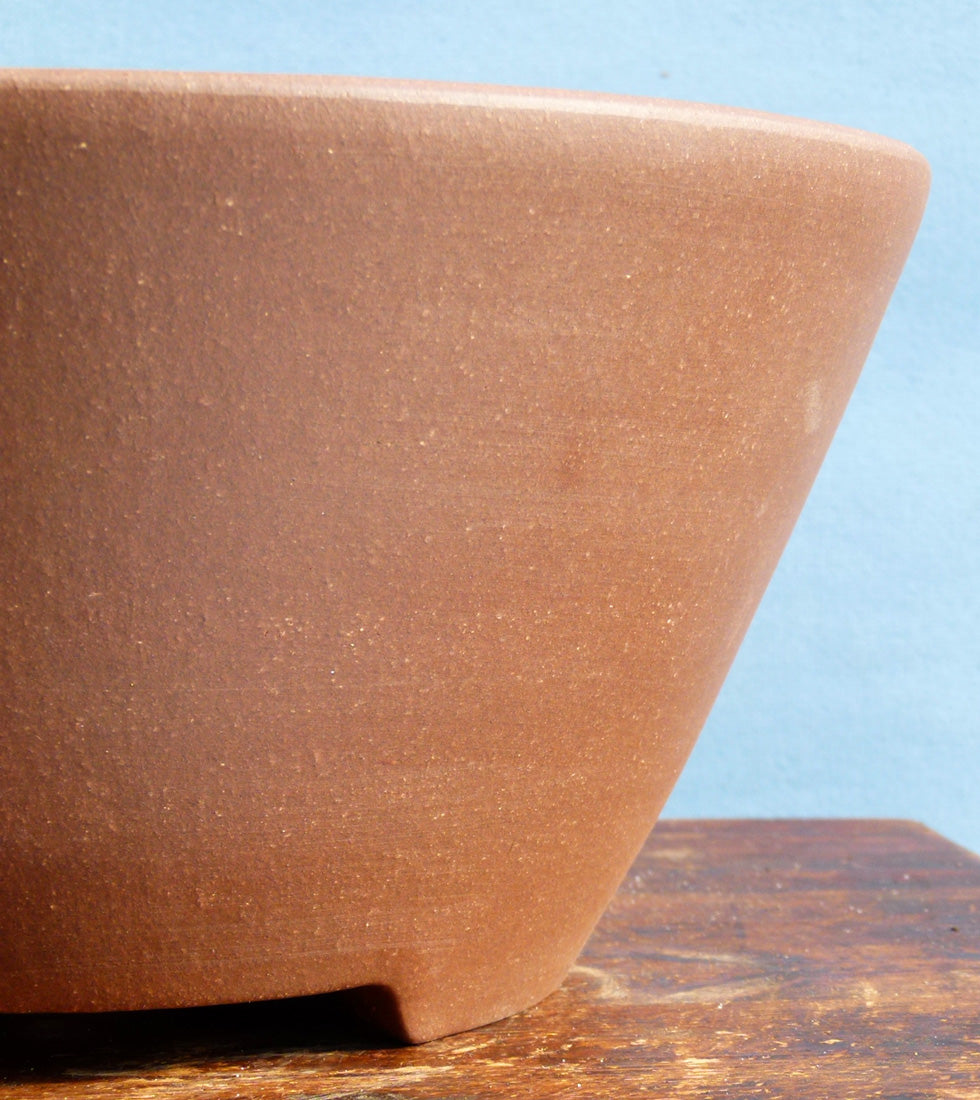 Heavy & high fired, frost proof quality stoneware unglazed bonsai pot in a very nice warm brown colour.