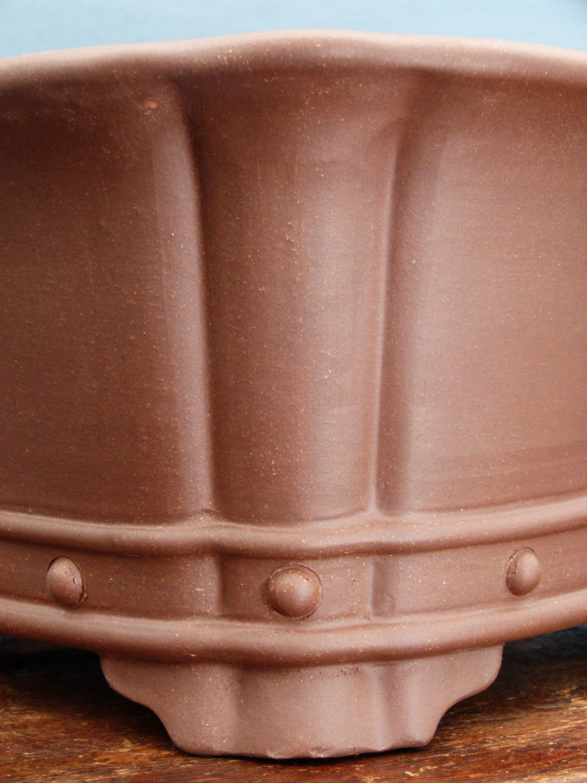 Heavy & high fired, frost proof quality stoneware unglazed bonsai pot in a very nice warm brown colour.