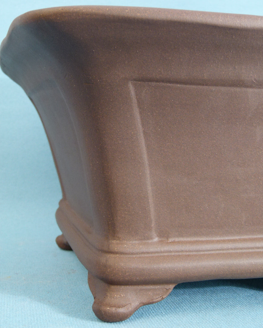 High temperature fired stoneware, frost proof quality unglazed bonsai pot in a very nice warm brown colour.