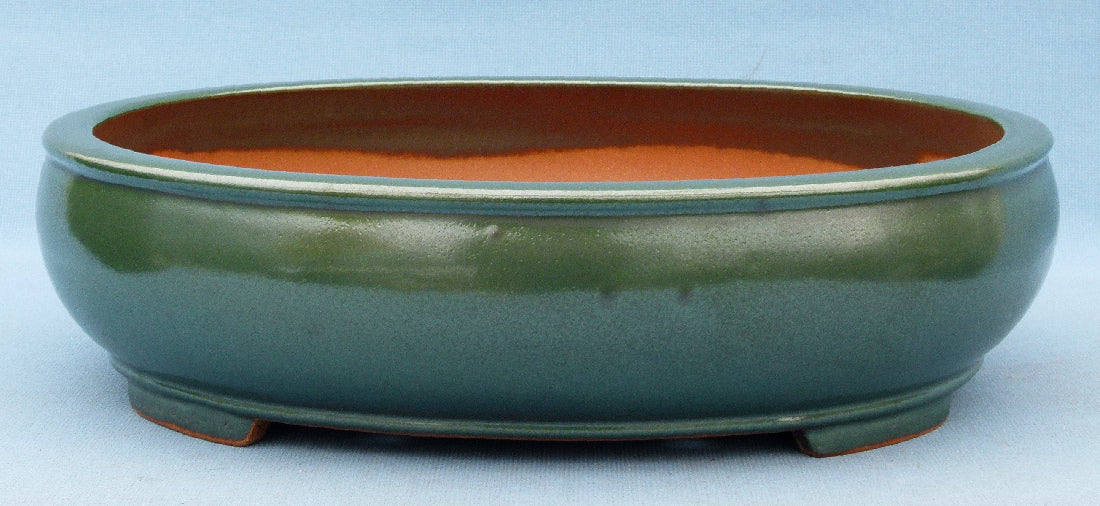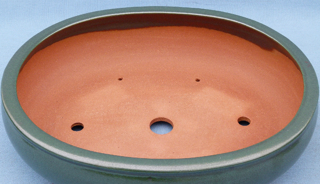 Exhibition Quality Green Glazed Oval Bonsai Pot - 19"