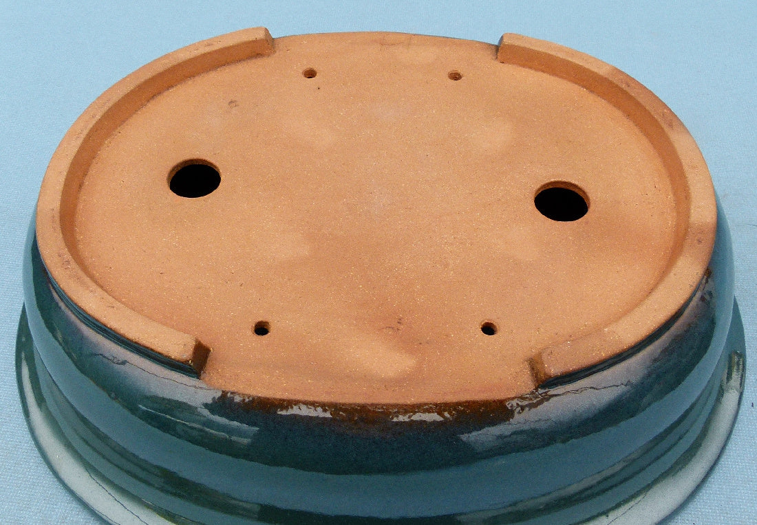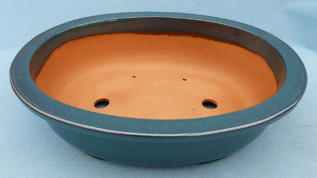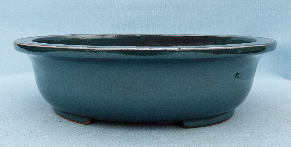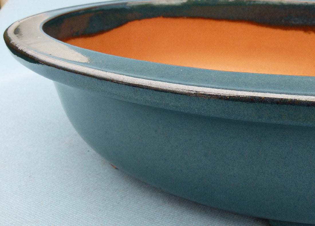 Exhibition Quality Blue-Green Glazed Oval Bonsai Pot - 18.5"