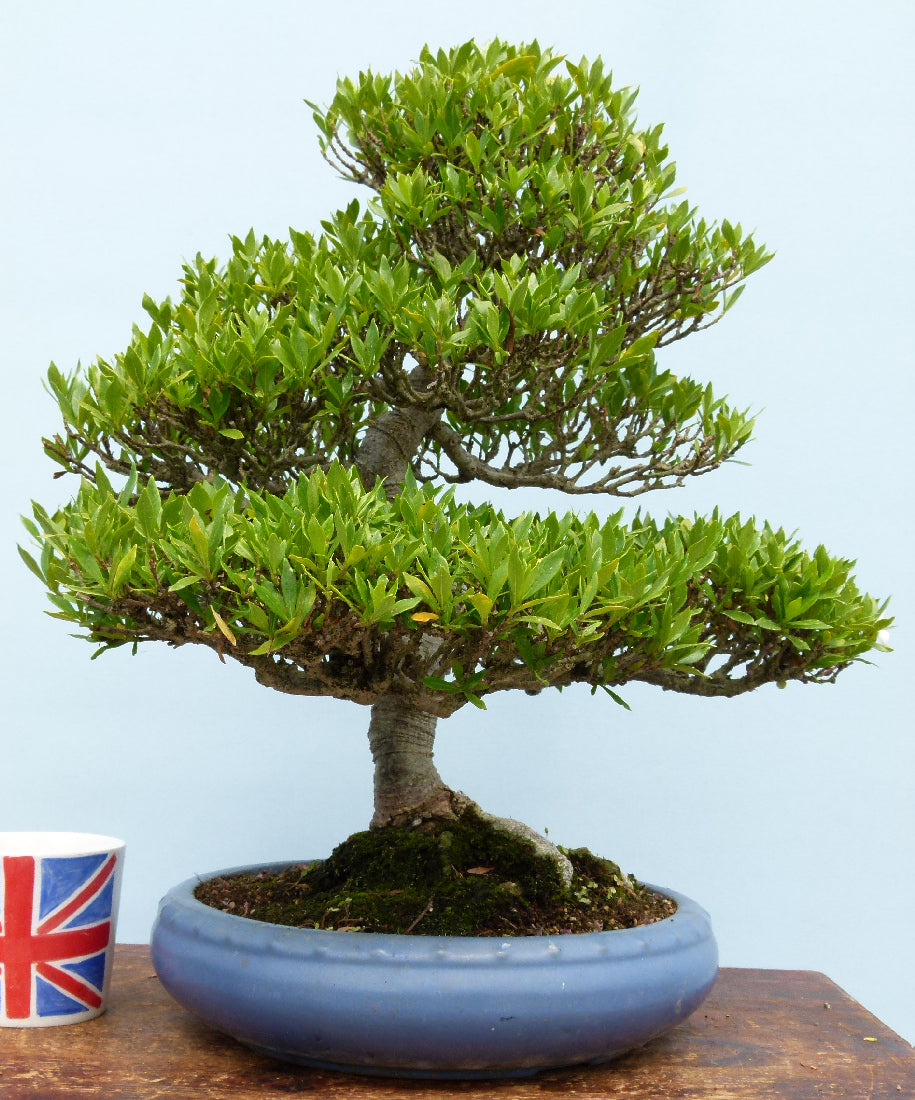 Planted in a very nice glazed Tokoname stoneware bonsai pot.
