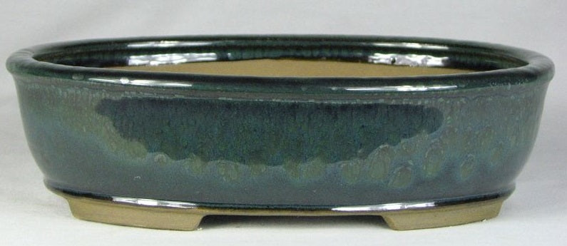Stoneware, frost resistant, attractive variable green glaze finish.