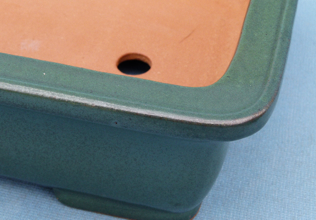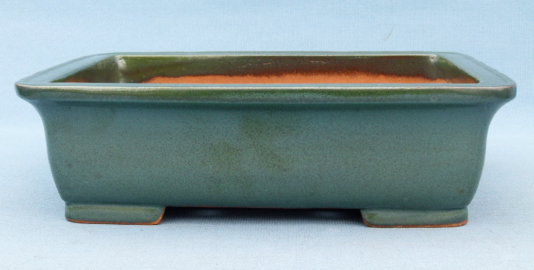 Exhibition Quality Green Glazed Rectangular Bonsai Pot - 15"