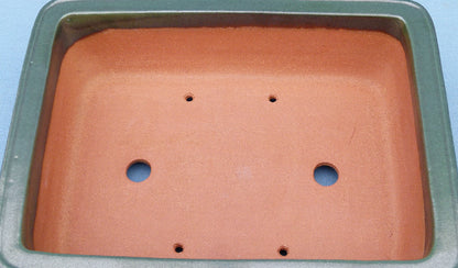 High Quality Green Glazed Rectangular Bonsai Pot - 15"