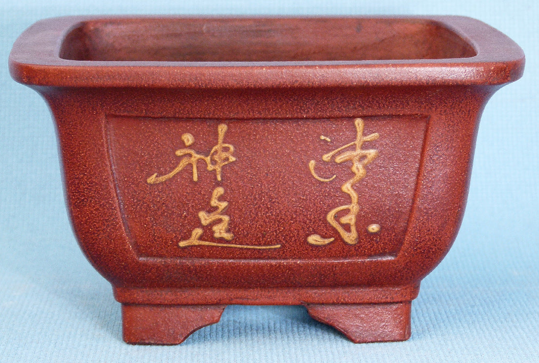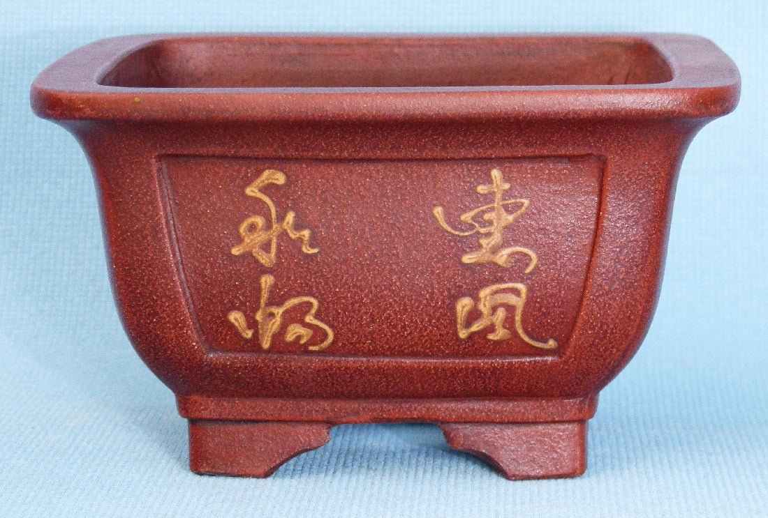 Each pot is hand made to exacting standards, each is then hand decorated by artisans and no two pots are exactly the same. The colours are warm and subdued and blend beautifully with high quality bonsai or colourful accent plants.