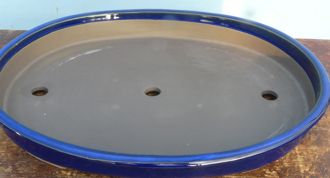 Japanese High Quality Blue Glazed Oval Bonsai Pot - 25"