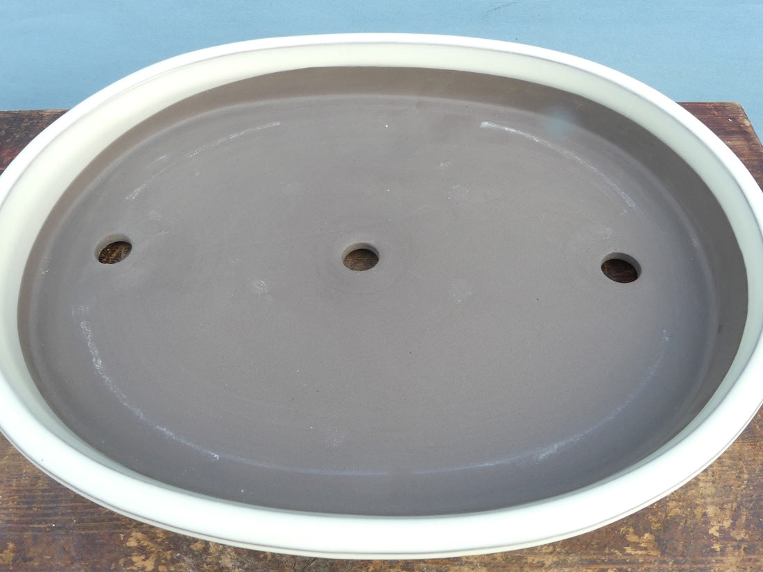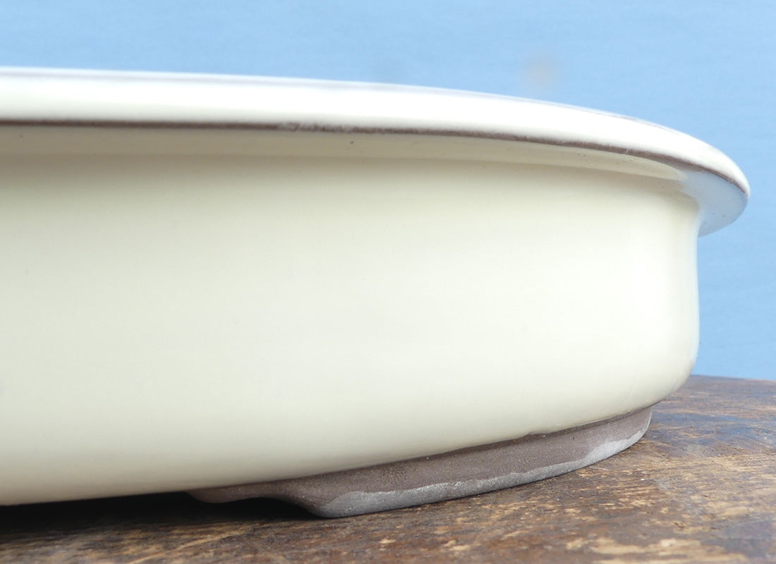 Japanese High Quality Cream Glazed Oval Bonsai Pot - 18"