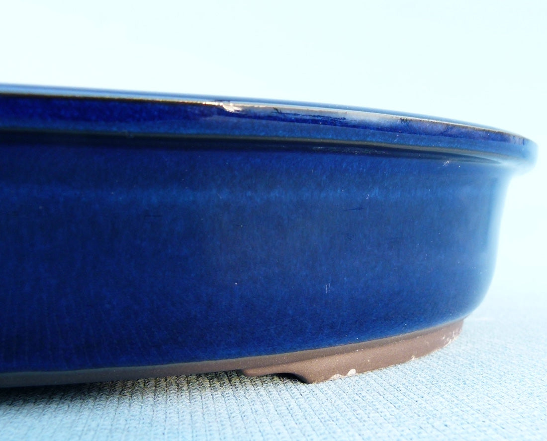 Japanese Made Quality Blue Glazed Oval Bonsai Pot - 11"