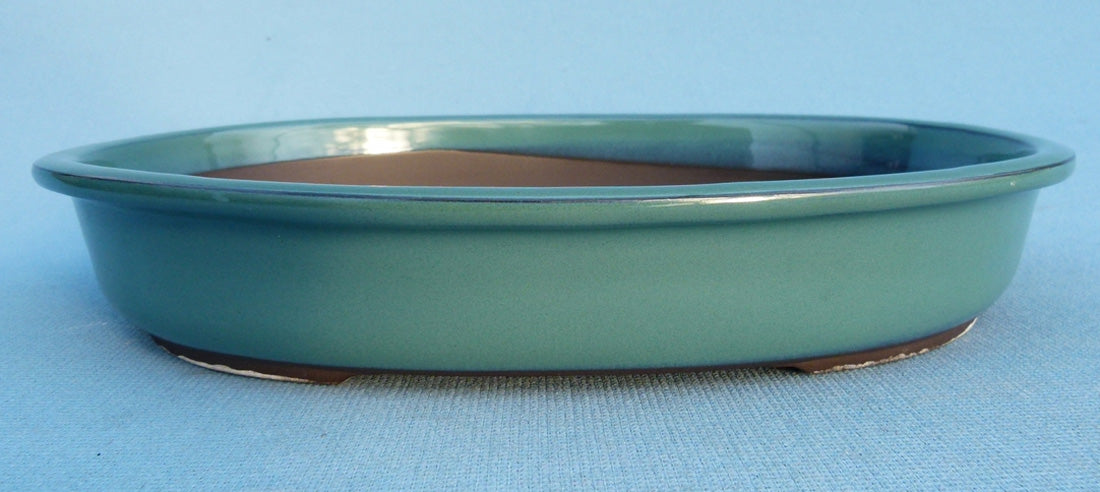 Japanese Made Quality Green Glazed Oval Bonsai Pot - 10"