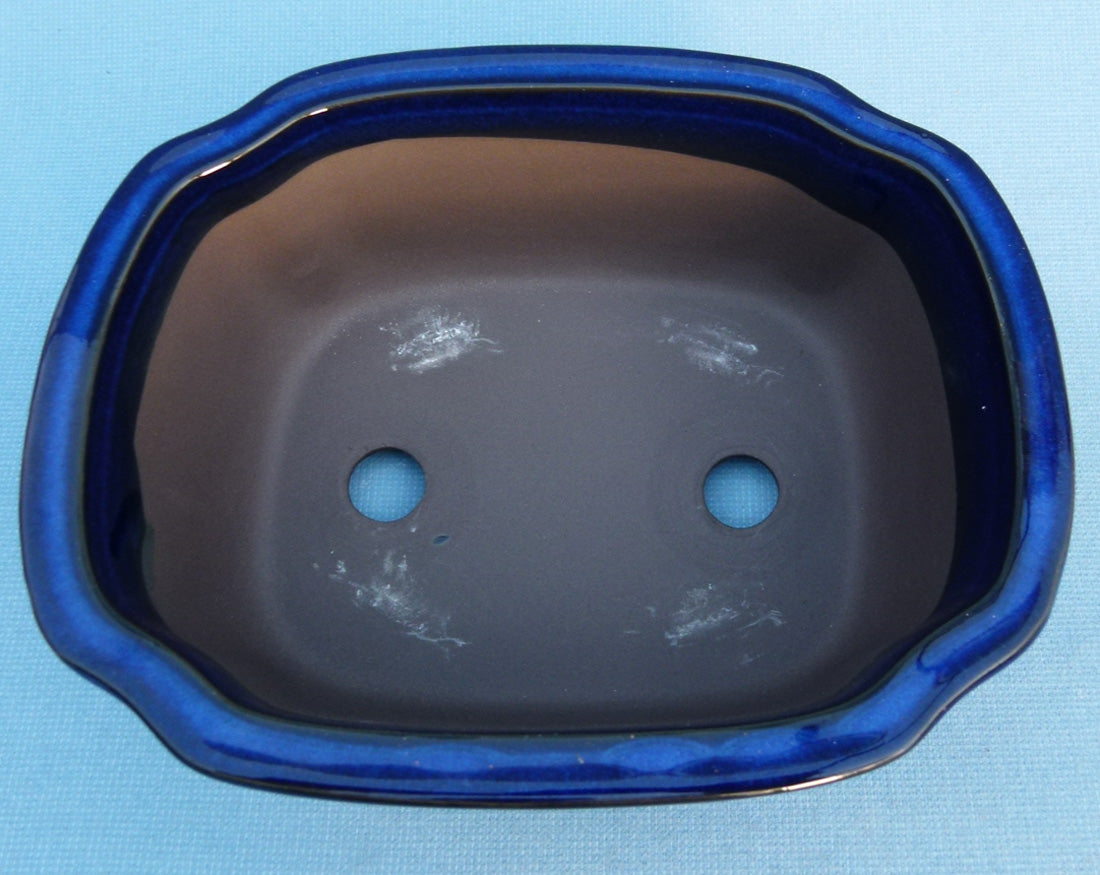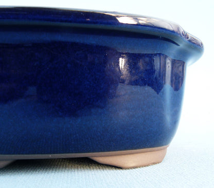 Oval Blue Glazed Japanese Made Bonsai Pot - 8"