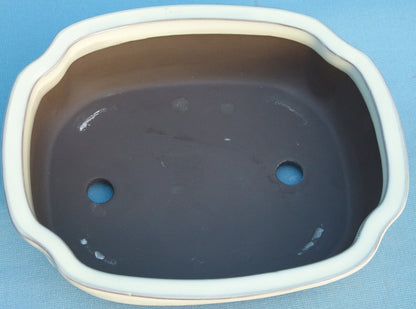 - Oval Cream Glazed Japanese Made Bonsai Pot - 11"