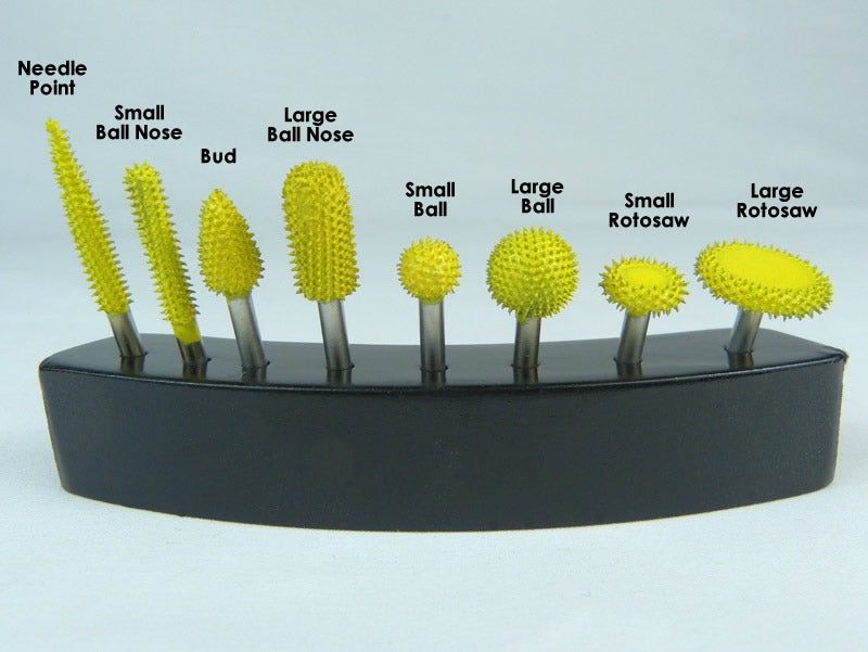 Saburrtooth® Wood Carving Burrs - Abrasive grades are colour coded