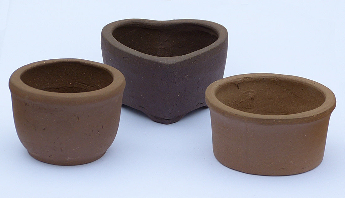 Three small unglazed bonsai pots suitable for mame sized bonsai or accent plants.