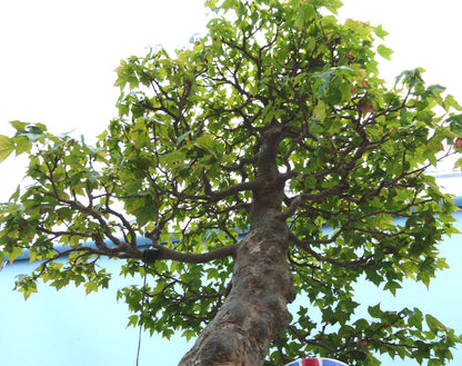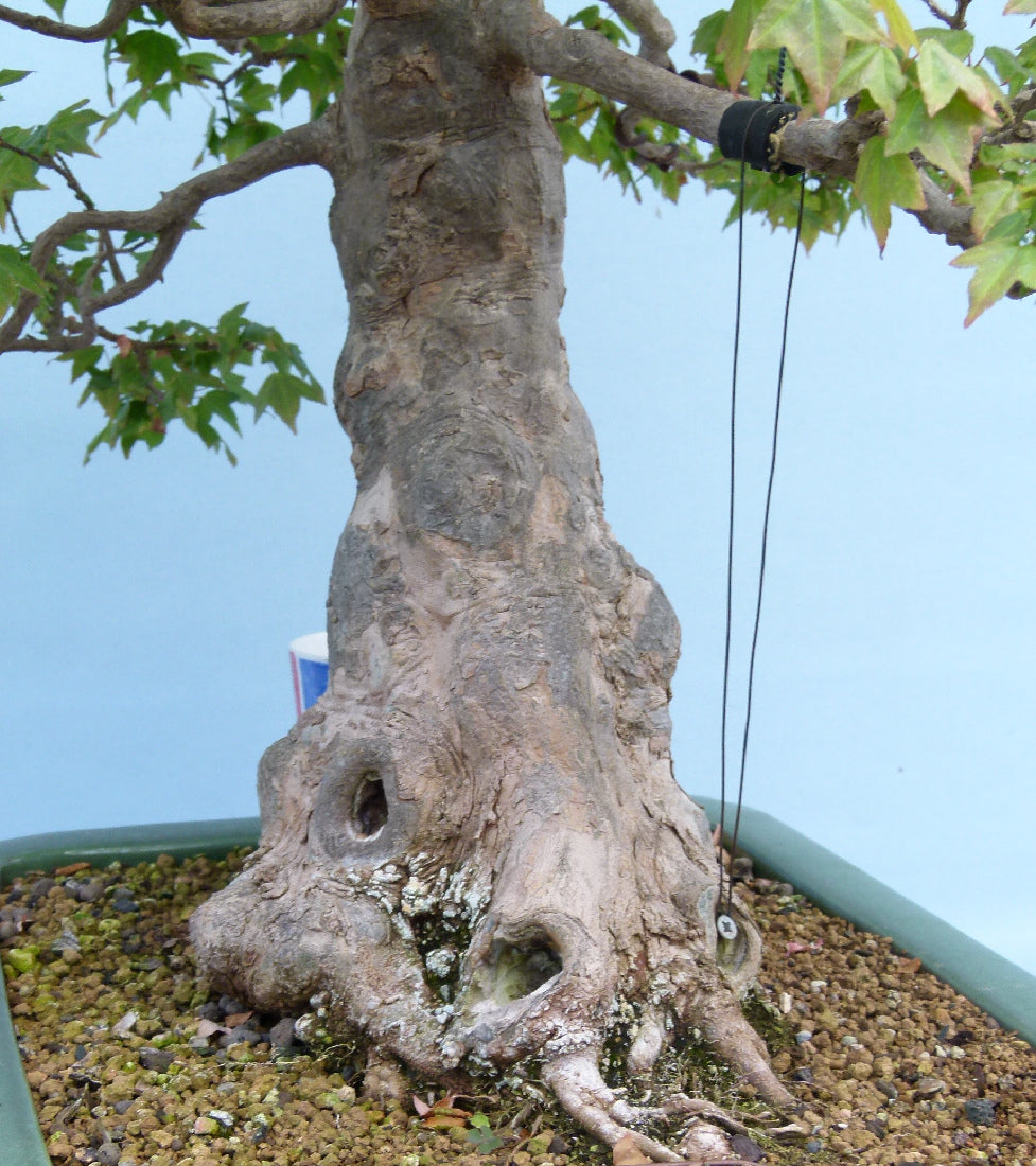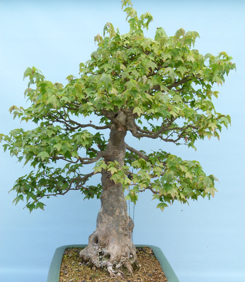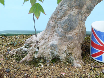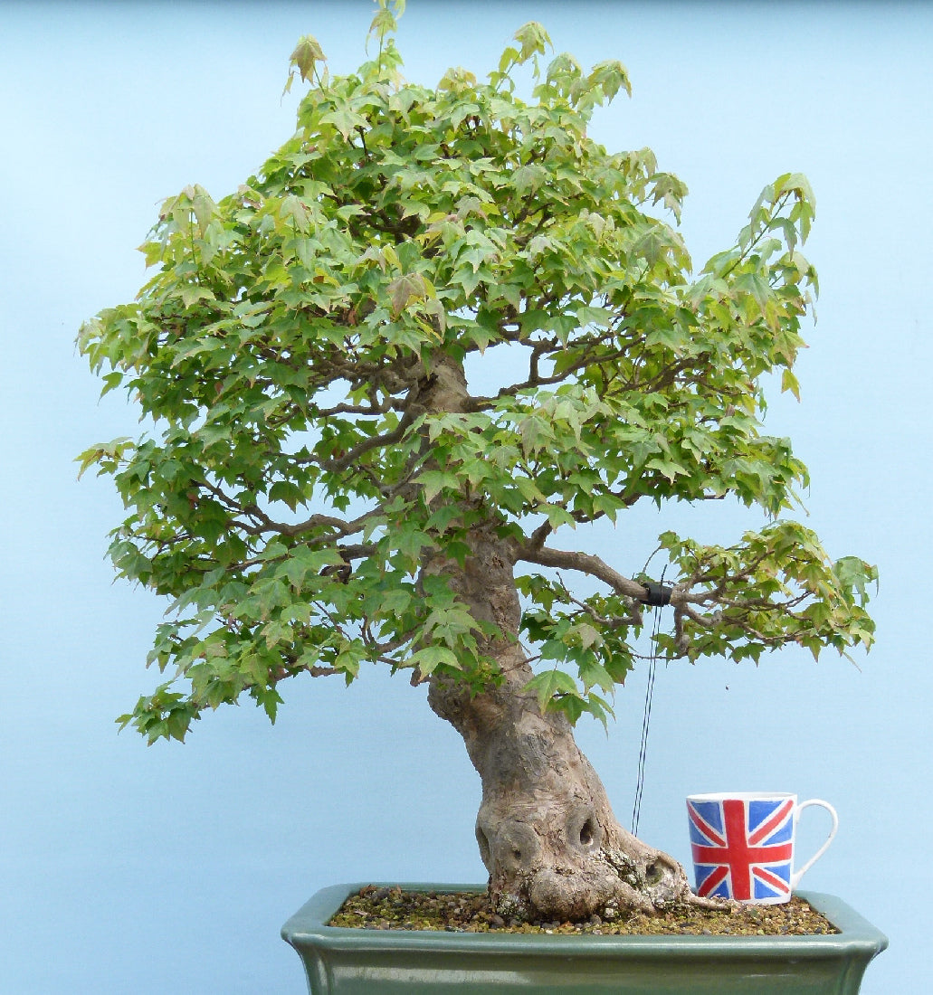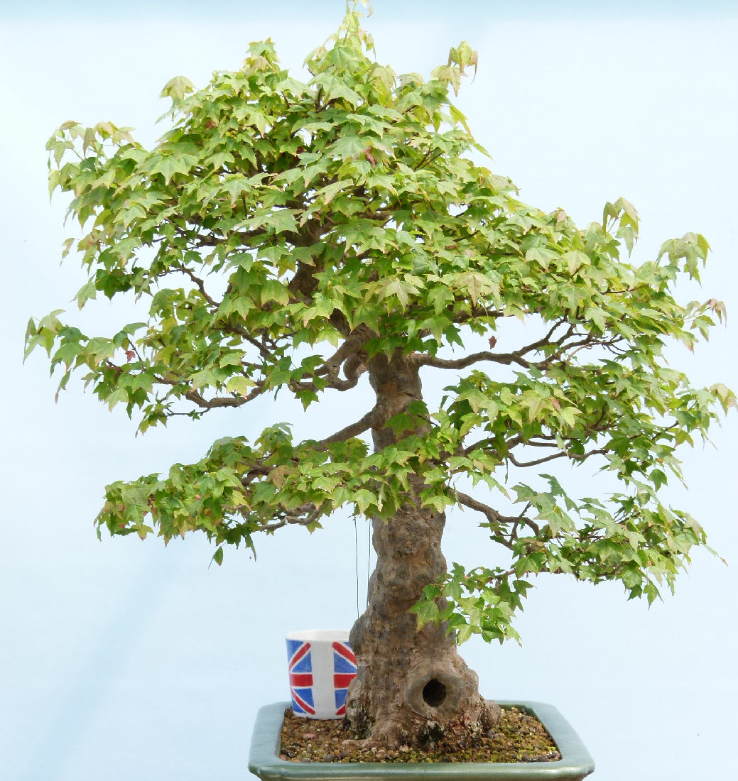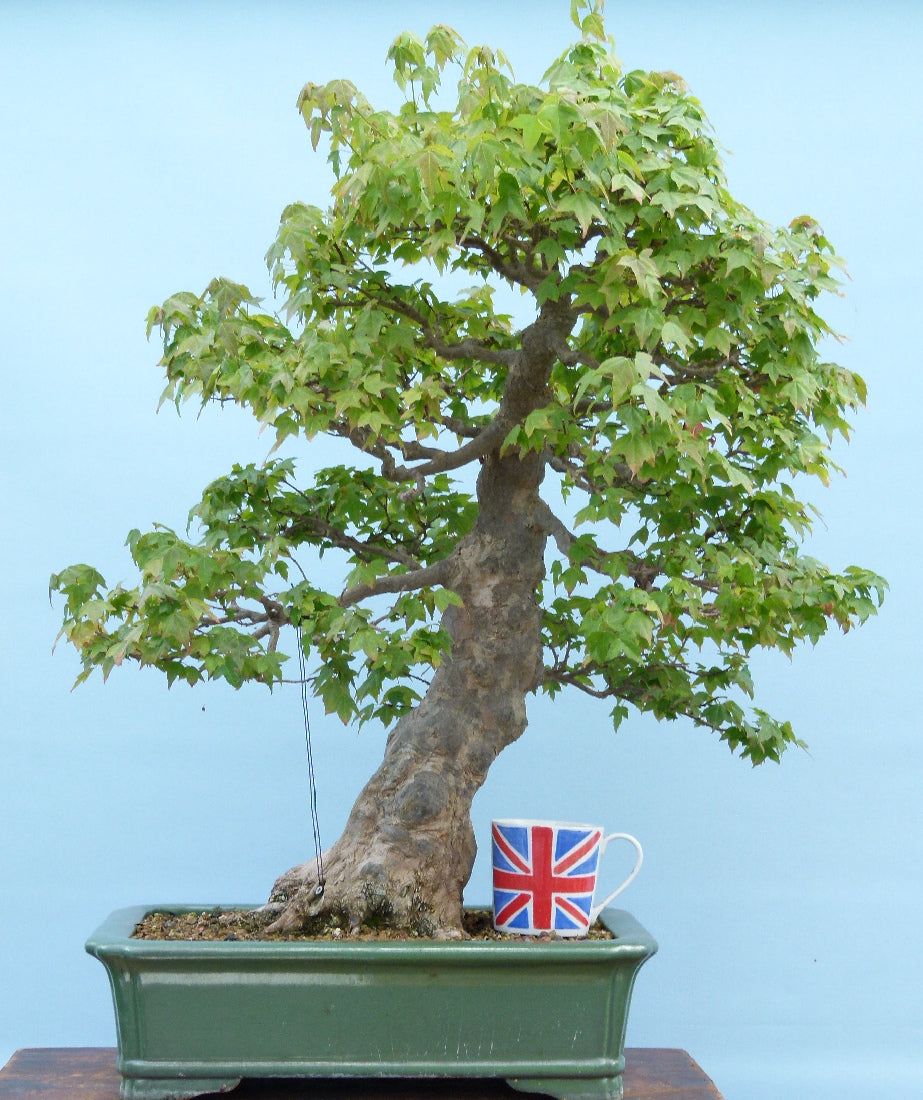 A lovely big trident maple with a beautiful trunk and excellent branch structure. This came from a private collection Graham purchased some time ago. Repotted earlier this year and now doing very well. An excellent nebari and powerful trunk taper set this beautiful tree apart. Lots of scope for further development and improvement or just enjoy as it is. A charming bonsai tree of outstanding character.